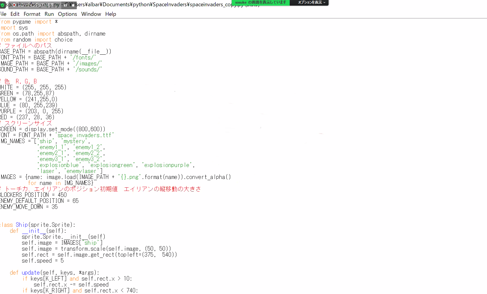 Pythonを用いたプログラミング実習です。 課題を自分で考え、開発方法を自ら探索して、オリジナルのゲームを作成することを目標としています。